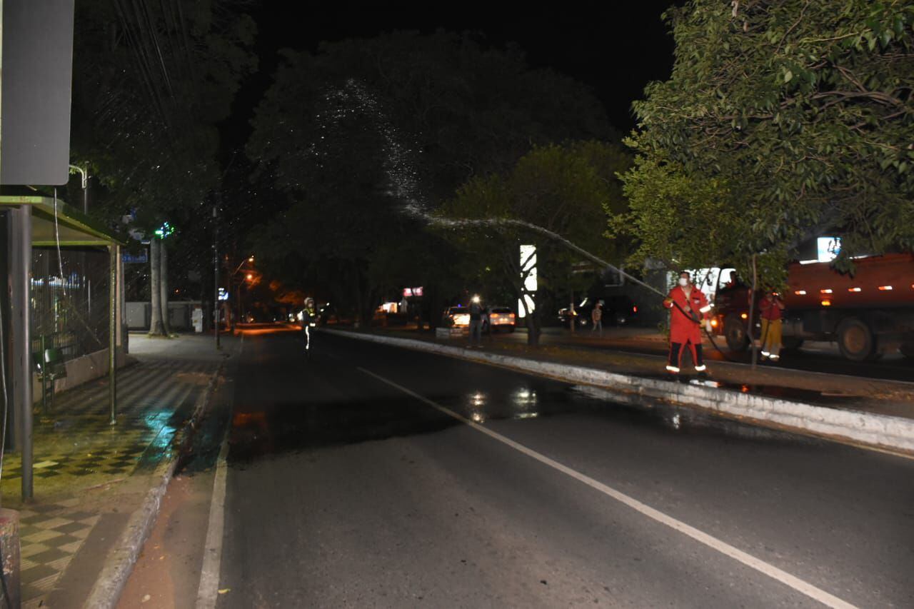 Un vehículo hidrante de la Municipalidad de Asunción empezó a recorrer esta noche sobre todos paradas de buses ubicadas en las principales avenidas de la capital y lugares de constante flujo de personas, como ser los mercados municipales, rociándo con una solución de cloro en agua -según las medidas estándares recomendadas por autoridades sanitarias- para eliminar el virus que provoca la enfermedad Covid-19.