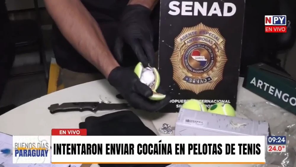 Un can antidrogas detectó una encomienda de pelotas de tenis que contenían cocaína en su interior en el aeropuerto Silvio Pettirossi. El cargamento provenía de Ciudad del Este y tenía como destino final, Australia.